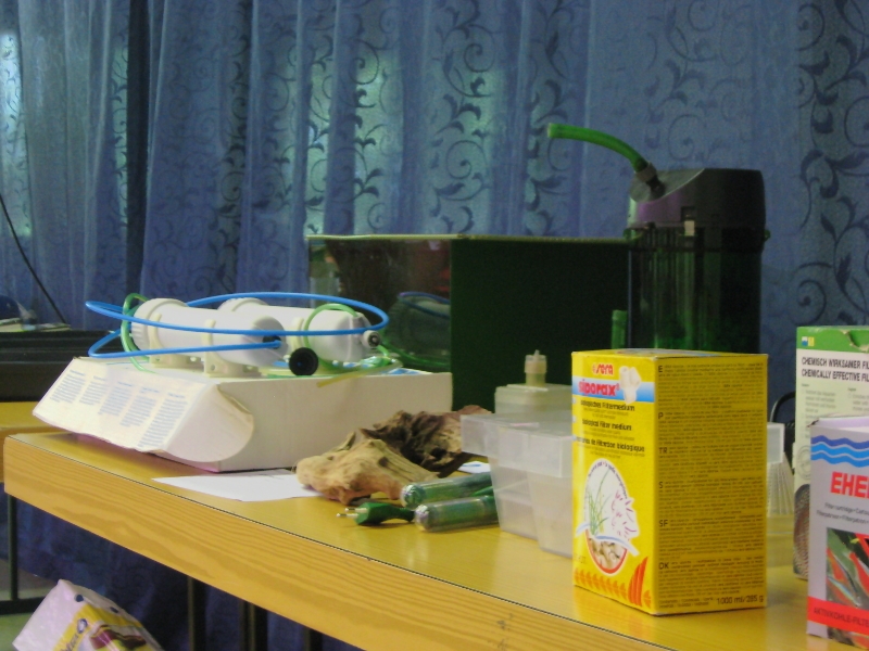 Alle Verkäufer und Aufbauhelfer haben während der Vorbereitung der Aquarien-Anlage alle Hände voll zu tun. Viele Züchter bringen dankenswerter weise ihr eigenes Aquarienwasser mit, so sind alle Becken schnell befüllt und für die Fische ist es nicht so stressig. Nach getaner Arbeit ist so manch einer froh, dass er seine Fische heil im Becken hat. Manchmal ist der Andrang an Besuchern so groß, dass wir darüber nachdenken, wie man vor lauter Menschen auch noch Fische zu Gesicht bekommt. Aber das hält keinen davon ab, mit einem kühlen Getränk in der Hand, seine Pfleglinge zu verkaufen und den Käufern die Haltung zu erklären.
